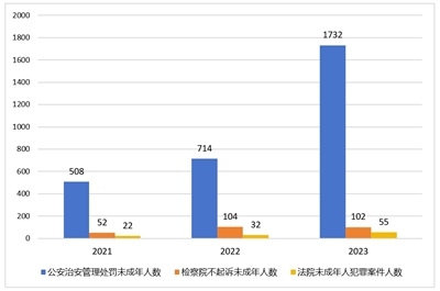 圖一:2021年至2023年蘭山區(qū)未成年人涉違法犯罪案件人數(shù)情況