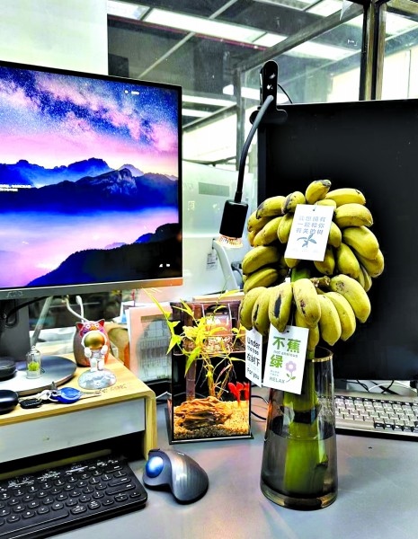 “現(xiàn)在大家工作都挺累的,職場(chǎng)里稍微有一點(diǎn)令人感到驚喜和有趣的話題,大家好像就會(huì)變得很開(kāi)心?!眳芹谑且幻来畈┲?,自從他開(kāi)始在辦公桌上養(yǎng)香蕉之后,單位的很多同事都會(huì)好奇地走過(guò)來(lái)瞧瞧。