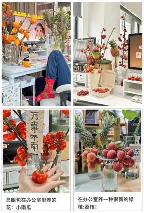 擺上香蕉,寓意“禁止蕉慮”;放上草莓,寓意“莓有煩惱”;南瓜在桌,寓意“萬(wàn)事不南”;養(yǎng)上番茄,寓意“好運(yùn)翻番”……