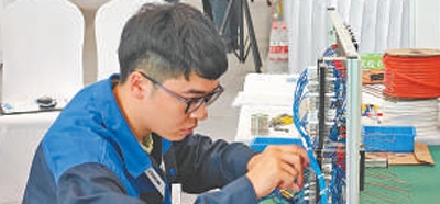 手持記號筆,目光如炬,只見軌道信號控制技術(shù)項目選手陳權(quán)(見圖,本報記者蔣雨師攝)在電路圖里精準鎖定電路,將一個個接點逐一填入配線表,動作行云流水,一氣呵成。在大賽現(xiàn)場,軌道信號控制技術(shù)項目選手需要完成軌道信號設(shè)備的設(shè)計、施工、調(diào)試與檢修工作。就設(shè)計環(huán)節(jié)而言,選手們需要把上百條電路信號的轉(zhuǎn)轍機電路設(shè)計圖轉(zhuǎn)換為電路配線表,但凡有一個接點錯誤,整個電路都將出現(xiàn)問題,而這一環(huán)節(jié),陳權(quán)只花了10分鐘。