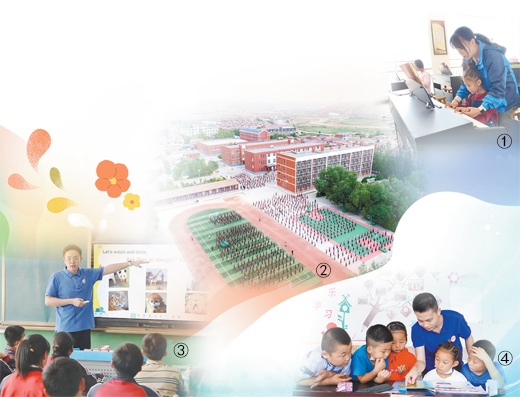 圖①:潘苑給孩子們上鋼琴課。 受訪者供圖 圖②:海原縣關(guān)橋中學(xué)全貌。林宇陽攝(人民視覺) 圖③:唐曉宇給學(xué)生們上英語課。 受訪者供圖 圖④:林宇陽和學(xué)生們在一起。蔣逢洲攝(人民視覺)