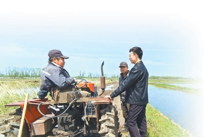 吉林省松原市寧江區(qū)毛都站鎮(zhèn)的田野上,一排排水稻秧苗青青,腳蹬膠靴、戴著眼鏡的支農(nóng)工作者汪宏宇蹲下身子,向村民講解水稻種植的技術(shù)細節(jié),仔細檢查著田里秧苗情況?!斑@都是前幾天剛栽種的水稻秧苗,長得挺硬實?!蓖艉暧钫f。