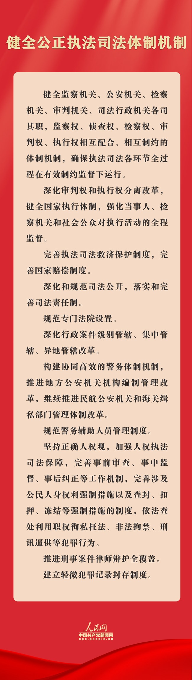 《決定》明確,法治是中國式現(xiàn)代化的重要保障。必須全面貫徹實施憲法,維護憲法權(quán)威,協(xié)同推進立法、執(zhí)法、司法、守法各環(huán)節(jié)改革,健全法律面前人人平等保障機制,弘揚社會主義法治精神,維護社會公平正義,全面推進國家各方面工作法治化。