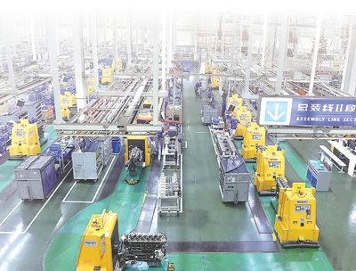 濰柴一號(hào)工廠總裝線Ⅱ段生產(chǎn)現(xiàn)場。以上圖片均為濰柴集團(tuán)提供