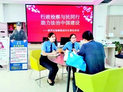 浙江省杭州市臨平區(qū)檢察院進社區(qū)開展“行政檢察,與民同行”主題普法宣傳活動,為居民提供法律咨詢服務(wù)。資料圖片