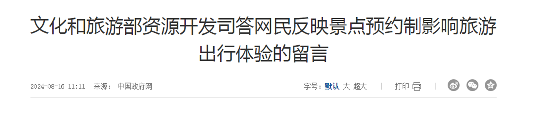對此,文化和旅游部資源開發(fā)司8月16日在中國政府網(wǎng)上答復:網(wǎng)民反映的景區(qū)預約問題,文化和旅游部多次作出部署并提出要求,一是所有景區(qū)均保留人工窗口,最大限度滿足游客參觀游覽需求;二是在承載量容許情況下,保障臨時到訪游客和老年人等群體入園需求;三是要求常年預約空余量較大的景區(qū)不實行預約;四是實施線上購票預約的,要求完善預約措施,優(yōu)化預約程序,盡可能減少游客個人信息采集。