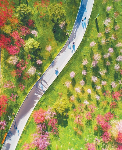 我國將綠色發(fā)展理念融入城鄉(xiāng)規(guī)劃建設(shè)管理中,穩(wěn)步推進(jìn)建設(shè)連通區(qū)域、城市、社區(qū)的城鄉(xiāng)綠道體系。2023年,我國建設(shè)口袋公園4100多個、綠道5300多公里,拓展草坪開放空間1.1萬公頃,截至今年5月底,已建設(shè)各類城市綠道約10萬公里。