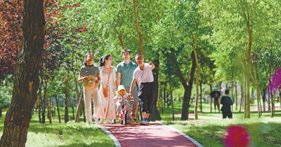 幸福道內(nèi)蒙古呼和浩特市,市民在綠道散步。王 正攝(人民視覺)