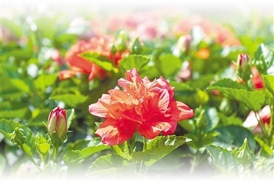 疑若焰生、朝開暮落的朱槿花,在我國(guó)古代文學(xué)記載中非常豐富,被賦予了深厚的人文內(nèi)涵?!罢螣熼L(zhǎng)暖無(wú)霜雪,槿艷繁花滿樹紅。每嘆芳菲四時(shí)厭,不知開落有春風(fēng)。”唐代詩(shī)人李紳就在詩(shī)中贊嘆,“無(wú)霜雪”環(huán)境下生長(zhǎng)的朱槿花四季常美。