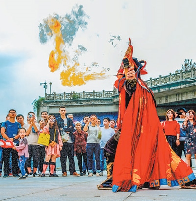 豐富文旅業(yè)態(tài)磁器口古鎮(zhèn)民俗表演。 磁器口古鎮(zhèn)管委會供圖