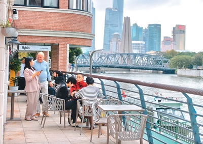 市民游客在蘇州河畔休憩觀光。本報記者 李 貞攝