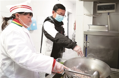 為了讓飯菜更適應社區(qū)老年居民的口味,信義飯?zhí)玫淖鲲垘煾狄蔡匾庹{整了烹飪方法?!皝磉@里吃飯的主要是老年人,所以我把飯菜做得軟軟的,同時也少油少鹽,讓他們吃得更健康?!闭趶N房忙碌的吳師傅笑著說。他系著干凈的圍裙,說話間,正熟練地翻炒著鍋里的菜,陣陣香味撲鼻而來。
