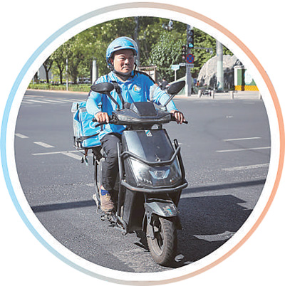 手機(jī)提示音響起,王叢叢掃了一眼屏幕,大步邁開了腿:“來活兒了,出發(fā)!”輕車熟路奔向不遠(yuǎn)處的咖啡店,取餐、乘電梯下樓、跨上電動(dòng)車,一套動(dòng)作下來用時(shí)不到5分鐘,王叢叢一天的配送工作開始了。