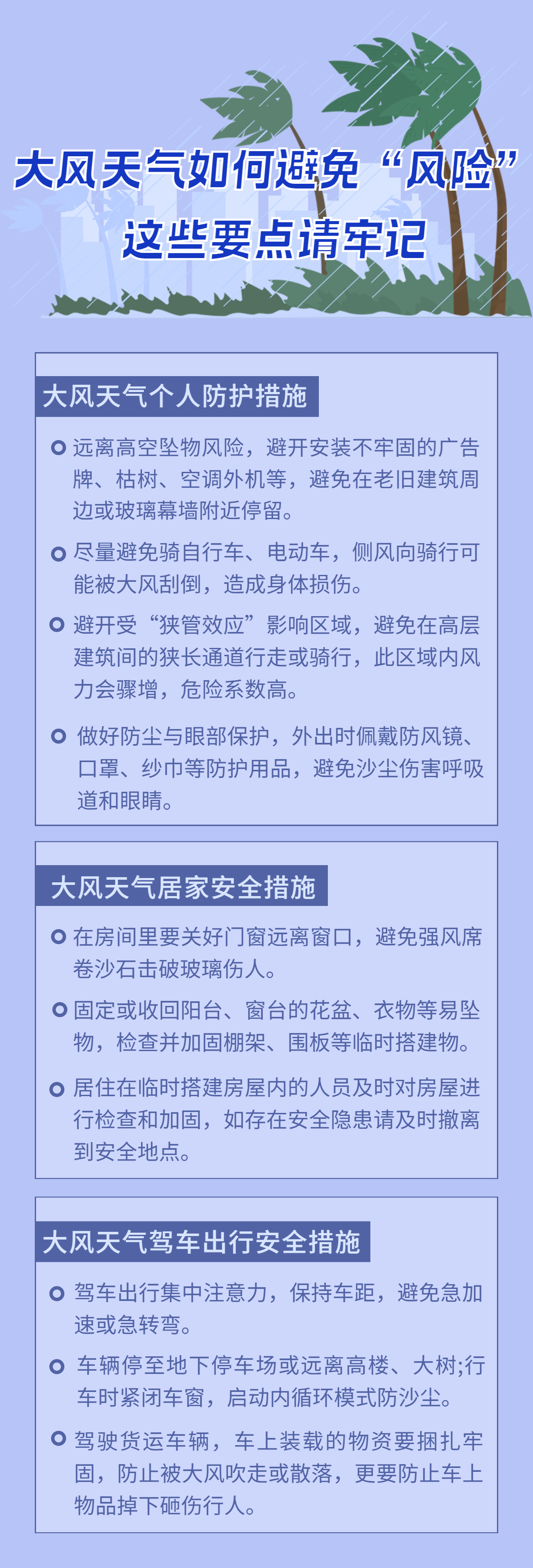據(jù)氣象部門預報,未來幾日,全國多地將出現(xiàn)強風天氣,部分地區(qū)陣風風力可達12~13級。春季到來,大風天氣增多,給我們的生活帶來了諸多安全隱患。該如何做好防范?一起來了解。