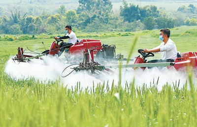 四川成都市雙流區(qū)黃水鎮(zhèn),95后新農(nóng)人對(duì)小麥進(jìn)行植保作業(yè)。