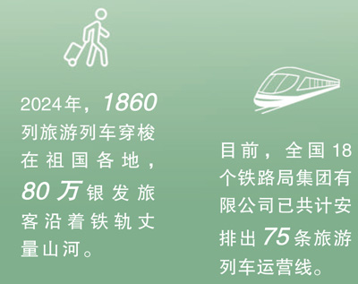 今年2月,商務部、文化和旅游部、中國國家鐵路集團有限公司等9單位聯(lián)合發(fā)布《關于增開銀發(fā)旅游列車促進服務消費發(fā)展的行動計劃》,指出要擴容旅游列車線路和產(chǎn)品,豐富銀發(fā)旅游列車產(chǎn)品供給,建立品質型、舒適型、普惠型產(chǎn)品體系。目前,全國18個鐵路局集團有限公司已共計安排出75條旅游列車運營線。一趟趟銀發(fā)列車如春日繁花次第綻放,為老年人鋪就通往詩與遠方的旅途,更以流動的風景線激活沿線文旅消費,為推動經(jīng)濟高質量發(fā)展注入“銀發(fā)”新動能。