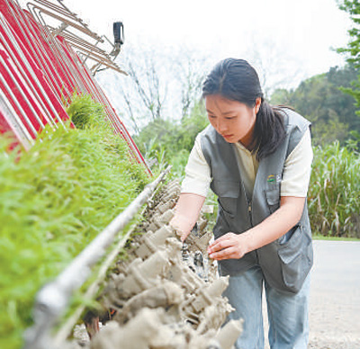 駱雨在檢測插秧機準備插秧作業(yè)。