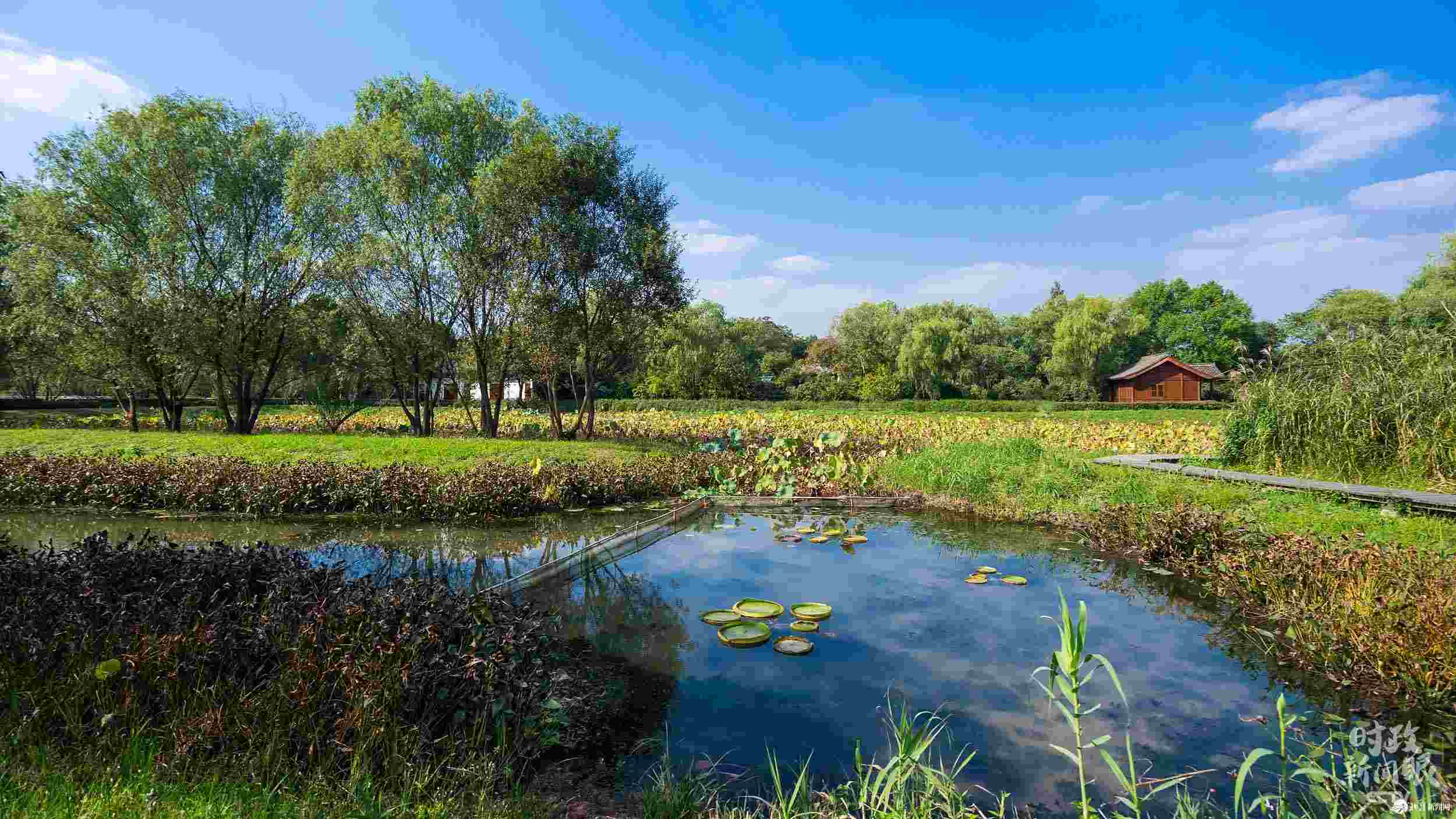 △西溪濕地內(nèi)約68%面積為河港、池塘、湖漾、沼澤等水域,水體庫容量約500萬立方米,有“萬塘攬勝”之稱。(總臺(tái)央視記者鐘銳、李輝拍攝)