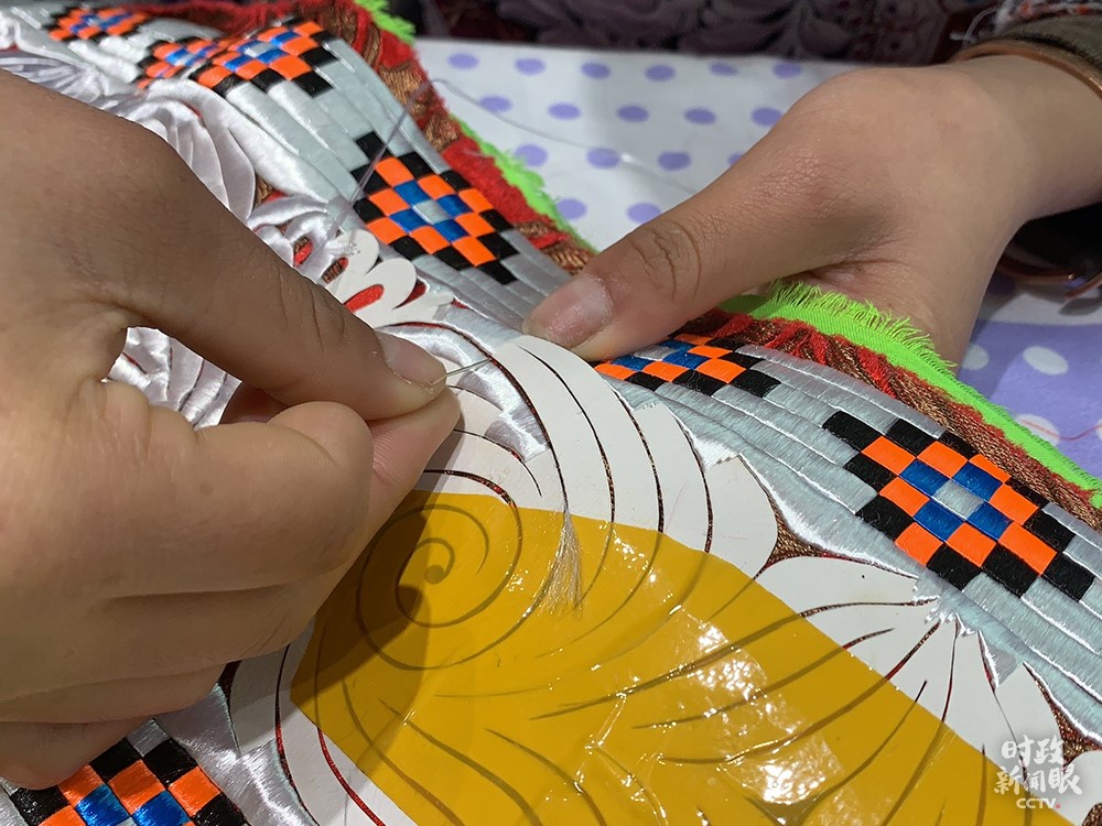 25歲的楊文麗是這家扶貧車間的負(fù)責(zé)人,她的刺繡手藝是從小跟母親學(xué)的。楊文麗告訴《時(shí)政新聞眼》,苗繡分手工繡和機(jī)繡。一件手工繡的“歪梳苗服飾”要賣到上萬(wàn)元。如今,車間的苗繡成品有近70%是通過(guò)直播帶貨銷售出去的?! ?/p>