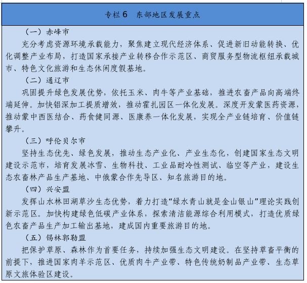經(jīng)濟(jì)發(fā)展基礎(chǔ)更加穩(wěn)固。地區(qū)生產(chǎn)總值年均增長4.3%,人均地區(qū)生產(chǎn)總值突破1萬美元,常住人口城鎮(zhèn)化率達(dá)到64.1%。能源和戰(zhàn)略資源基地得到提升,煤炭產(chǎn)能、外運(yùn)量、發(fā)電量和外送電量均居全國首位,可再生能源裝機(jī)占比達(dá)到36.1%,稀土原材料就地轉(zhuǎn)化率達(dá)到75%,稀土功能材料及終端應(yīng)用產(chǎn)品占比達(dá)到53.6%。農(nóng)畜產(chǎn)品生產(chǎn)基地更加鞏固,糧食和畜牧生產(chǎn)連豐連穩(wěn),農(nóng)畜產(chǎn)品加工轉(zhuǎn)化率達(dá)到65%,形成2個千億級、9個百億級農(nóng)牧業(yè)主導(dǎo)產(chǎn)業(yè)。數(shù)字經(jīng)濟(jì)、會展經(jīng)濟(jì)、商貿(mào)物流、現(xiàn)代金融等加快發(fā)展。