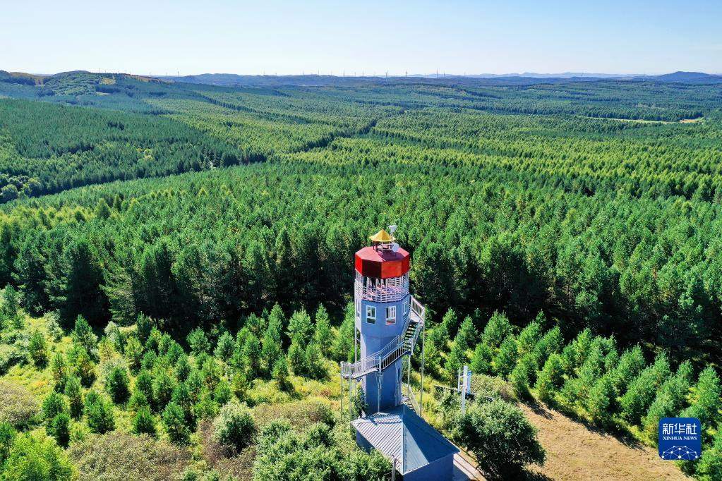河北塞罕壩機(jī)械林場(chǎng)內(nèi)的望海樓(8月23日攝,無人機(jī)照片)。新華社記者牟宇攝