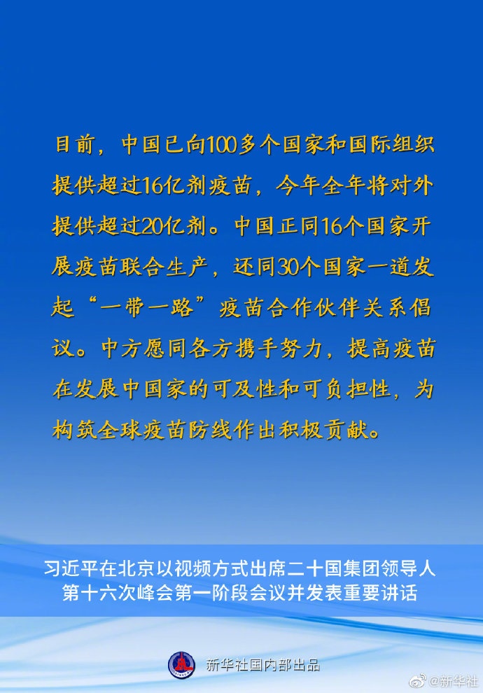 習(xí)近平主席在二十國集團(tuán)領(lǐng)導(dǎo)人第十六次峰會(huì)第一階段會(huì)議上的重要講話要點(diǎn)速覽