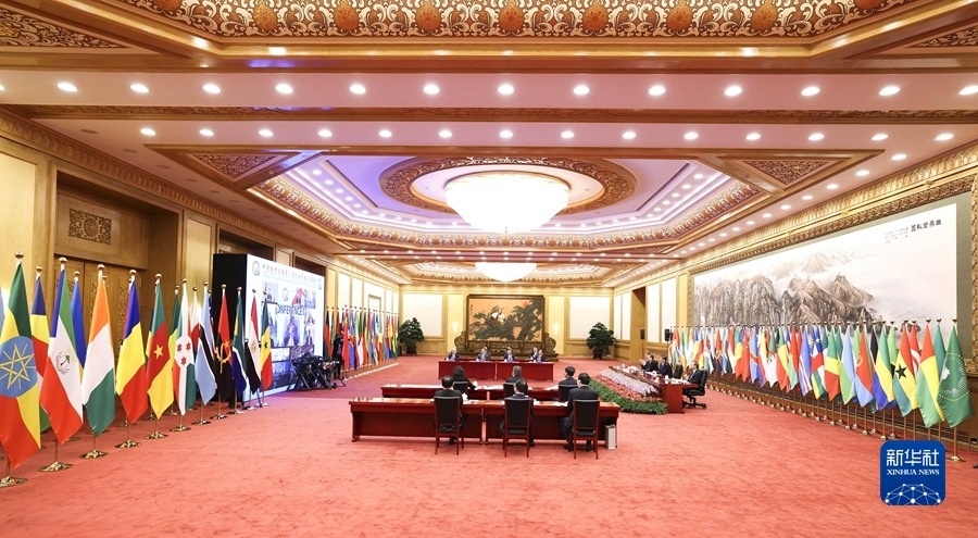 11月29日晚,國(guó)家主席習(xí)近平在北京以視頻方式出席中非合作論壇第八屆部長(zhǎng)級(jí)會(huì)議開幕式并發(fā)表題為《同舟共濟(jì),繼往開來,攜手構(gòu)建新時(shí)代中非命運(yùn)共同體》的主旨演講。新華社記者 劉彬 攝