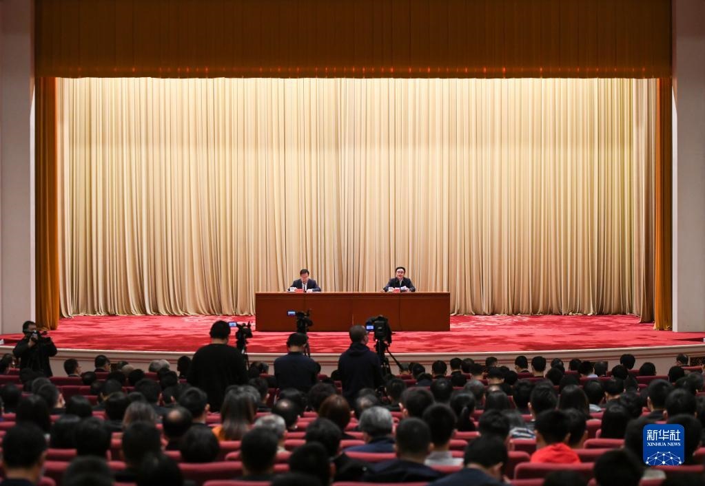 2021年3月16日,黨史學(xué)習(xí)教育中央宣講團(tuán)首場(chǎng)報(bào)告會(huì)在北京舉行。這是中央宣講團(tuán)成員、中央黨史和文獻(xiàn)研究院院長(zhǎng)曲青山(右)在報(bào)告會(huì)上作宣講報(bào)告。新華社記者陳曄華攝