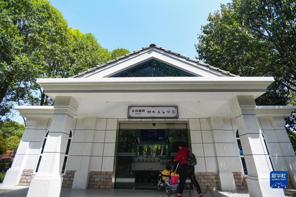 市民帶著小朋友進(jìn)入位于湖南長(zhǎng)沙縣星沙中心廣場(chǎng)的智慧廁所(2021年3月24日攝)。新華社記者陳澤國(guó)攝