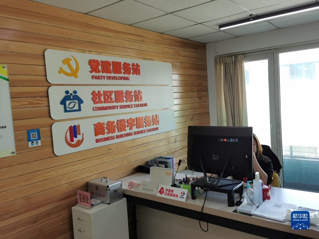 這是2021年5月8日拍攝的北京市朝陽(yáng)區(qū)八里莊街道華貿(mào)中心社區(qū)“多站合一”后的社區(qū)辦公區(qū)域。新華社記者邰思聰攝