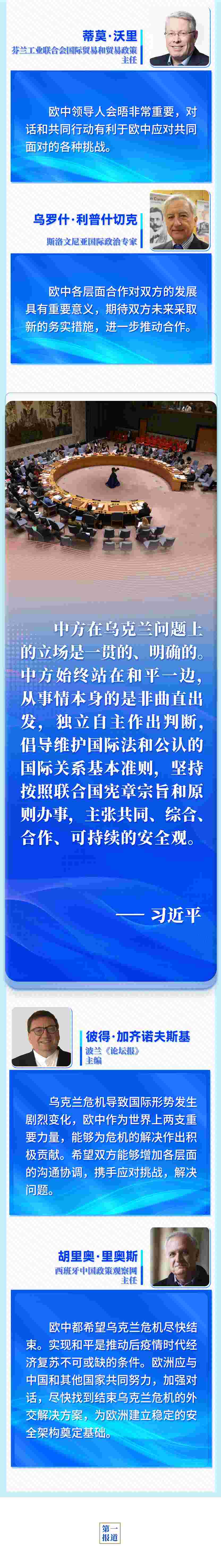 國家主席習(xí)近平4月1日晚在北京以視頻方式會(huì)見歐洲理事會(huì)主席米歇爾和歐盟委員會(huì)主席馮德萊恩。歐洲多國人士高度評(píng)價(jià)習(xí)近平主席就中歐關(guān)系、烏克蘭危機(jī)等問題提出的重要主張,認(rèn)為會(huì)晤為雙方關(guān)系持續(xù)健康發(fā)展作出戰(zhàn)略引領(lǐng),為復(fù)雜動(dòng)蕩的國際局勢(shì)注入穩(wěn)定性。