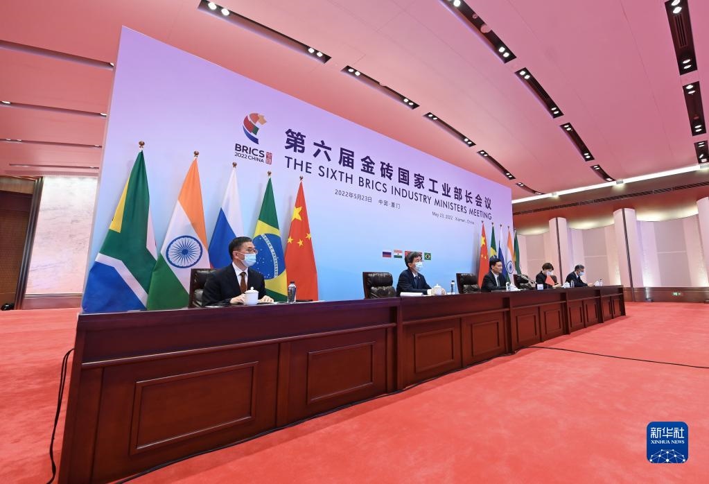 2022年5月23日,第六屆金磚國家工業(yè)部長會議在福建廈門以視頻會晤的形式舉行。新華社記者林善傳攝