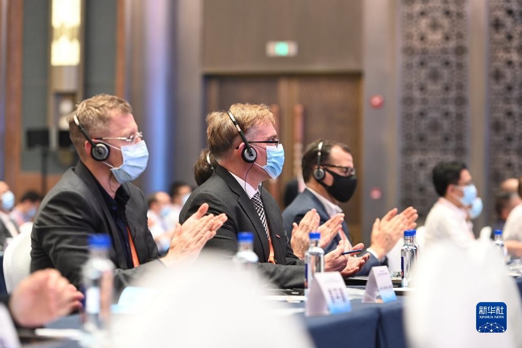 2022年5月23日,嘉賓在福建廈門出席金磚國家工業(yè)互聯(lián)網(wǎng)與數(shù)字制造發(fā)展論壇開幕式。新華社記者林善傳攝