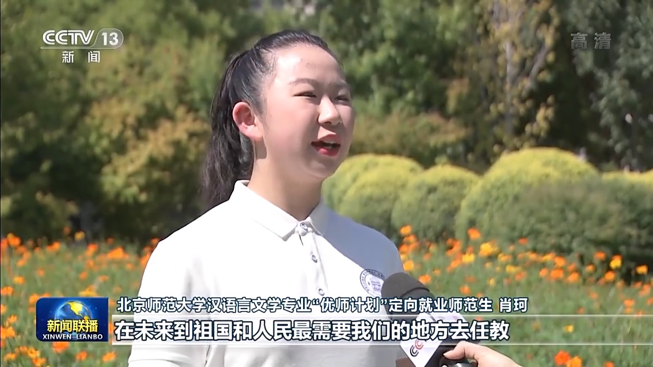 北京師范大學(xué)漢語(yǔ)言文學(xué)專業(yè)“優(yōu)師計(jì)劃”定向就業(yè)師范生肖珂:總書(shū)記勉勵(lì)我們?cè)鲩L(zhǎng)傳道授業(yè)解惑本領(lǐng),在未來(lái)到祖國(guó)和人民最需要我們的地方去任教。我定不負(fù)囑托,努力學(xué)習(xí),在畢業(yè)后回到我的家鄉(xiāng)。