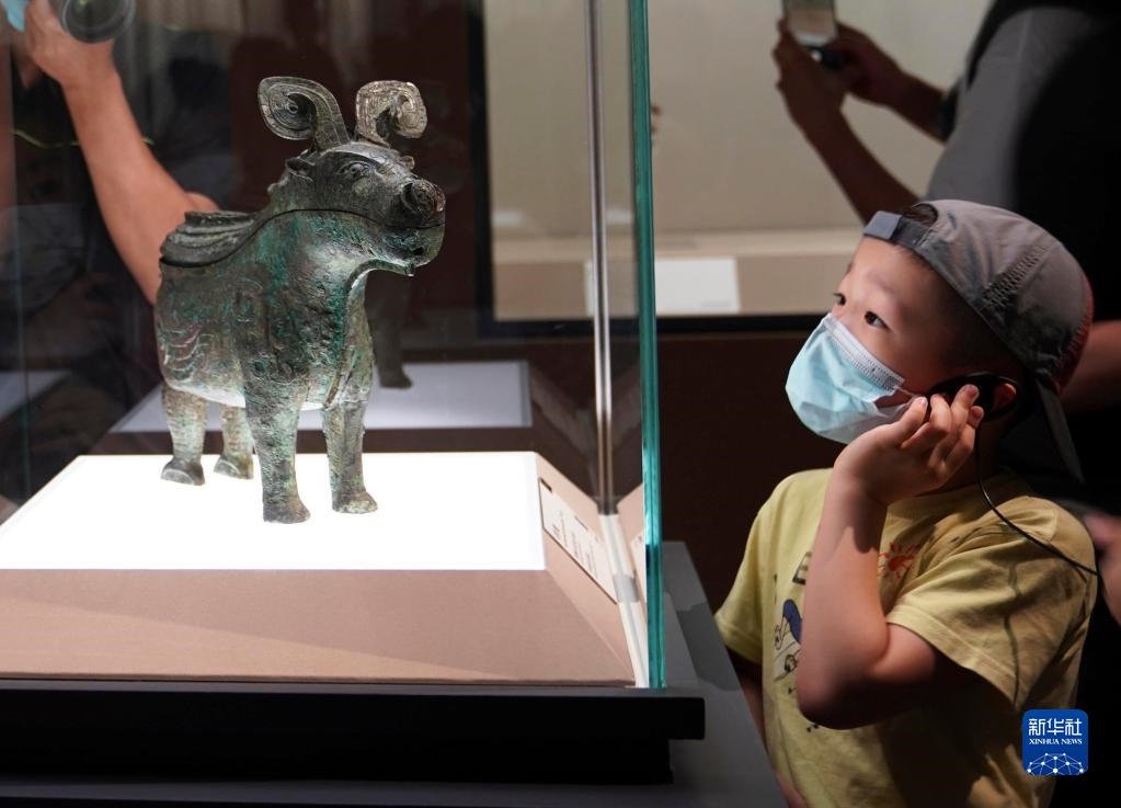 小朋友在上海博物館舉行的“宅茲中國(guó)——河南夏商周三代文明展”上參觀(2022年7月30日攝)。新華社記者任瓏攝