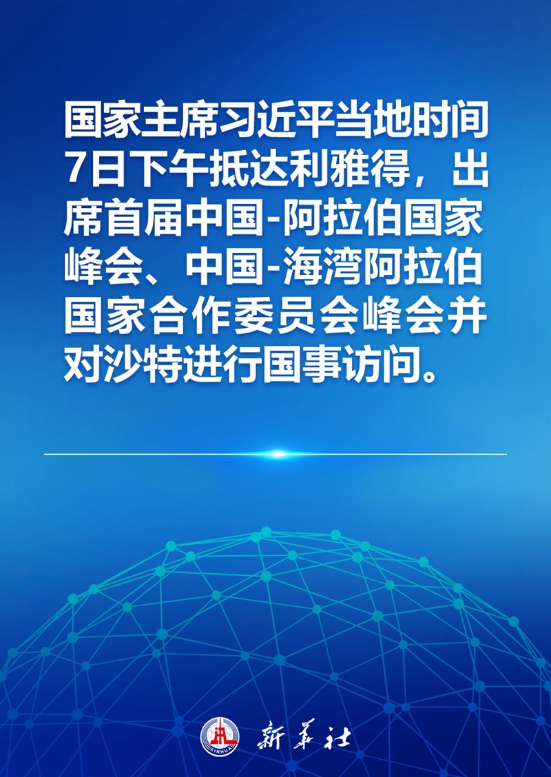 新華社快訊:國(guó)家主席習(xí)近平當(dāng)?shù)貢r(shí)間7日下午抵達(dá)利雅得,出席首屆中國(guó)-阿拉伯國(guó)家峰會(huì)、中國(guó)-海灣阿拉伯國(guó)家合作委員會(huì)峰會(huì)并對(duì)沙特進(jìn)行國(guó)事訪問(wèn)。