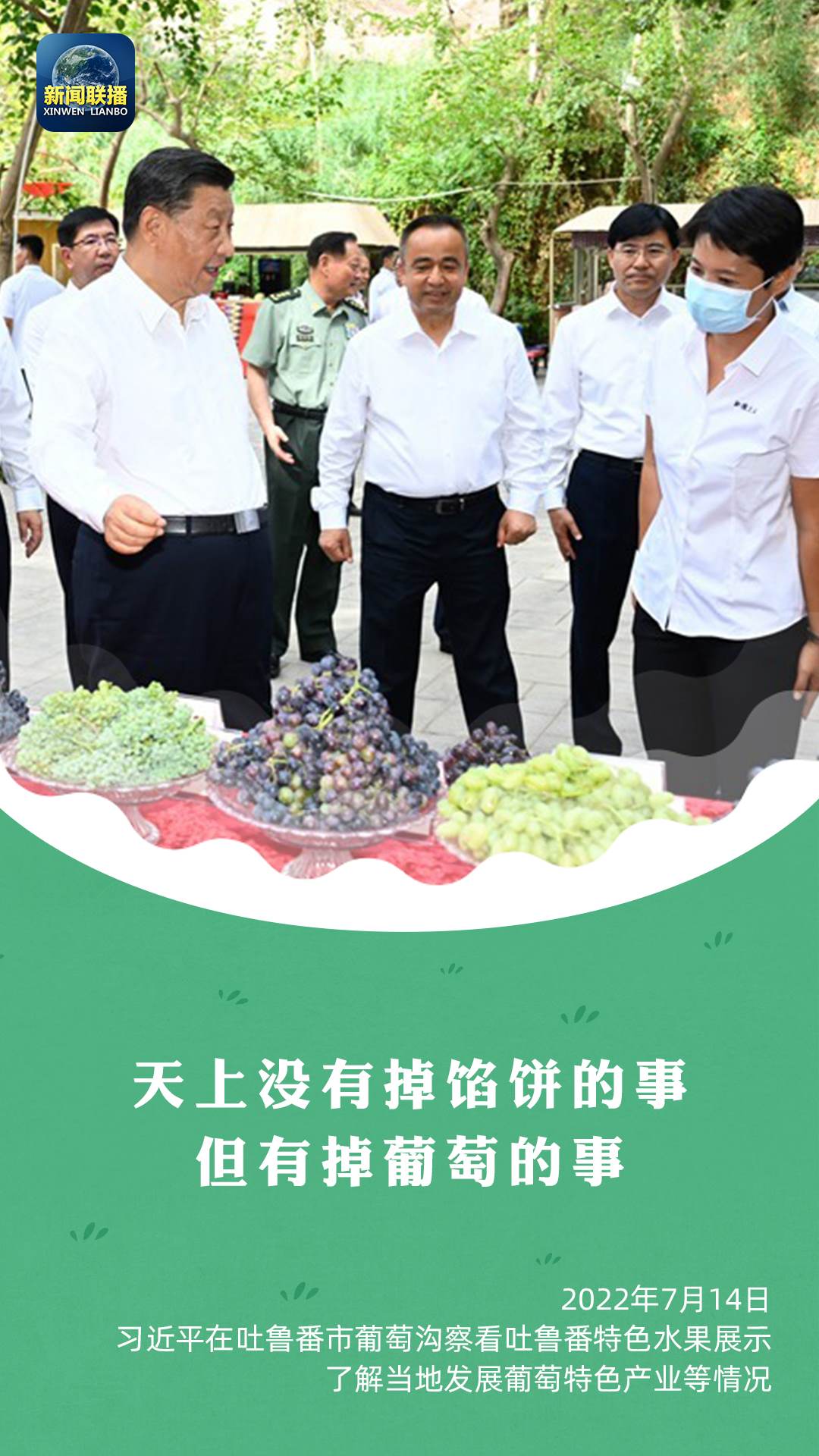 “多么富饒的一個(gè)地方,瓜果飄香。這是大自然的饋贈(zèng)。”總書記風(fēng)趣地說,“天上沒有掉餡餅的事,但有掉葡萄的事?!笨倳涍€強(qiáng)調(diào),要推動(dòng)文化和旅游融合發(fā)展,打造富民產(chǎn)業(yè)。