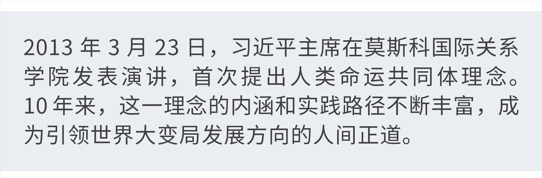 “我們兩國(guó)要永做好鄰居、好朋友、好伙伴”。10年前,當(dāng)選國(guó)家主席后首次出訪,習(xí)近平在莫斯科國(guó)際關(guān)系學(xué)院發(fā)表演講時(shí)這樣說(shuō)道。也正是在這次演講中,習(xí)近平主席首次提出人類(lèi)命運(yùn)共同體理念。
