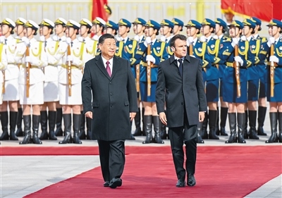 習近平歡迎馬克龍再次訪華。習近平指出,當今世界正在經(jīng)歷深刻的歷史之變,中法作為聯(lián)合國安理會常任理事國和具有獨立自主傳統(tǒng)的大國,作為世界多極化、國際關系民主化的堅定推動者,有能力、有責任超越分歧和束縛,堅持穩(wěn)定、互惠、開拓、向上的中法全面戰(zhàn)略伙伴關系大方向,踐行真正的多邊主義,維護世界和平、穩(wěn)定、繁榮。