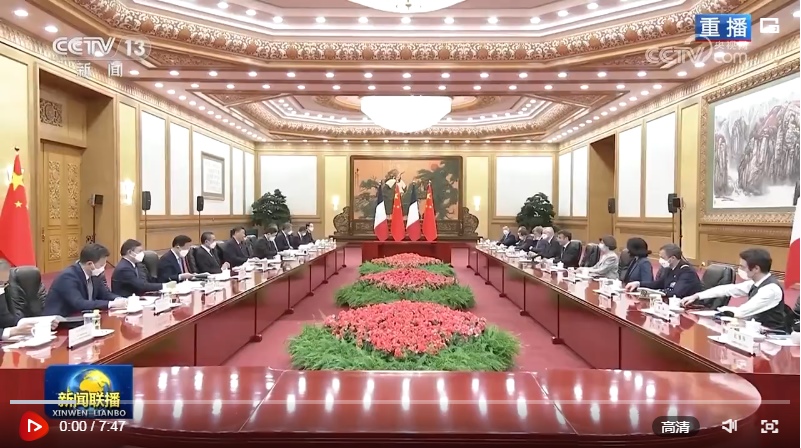 馬克龍表示,我對3年多前訪華情景記憶猶新,非常高興再次訪華,同習近平主席共同探討進一步提升法中全面戰(zhàn)略伙伴關(guān)系。我完全贊同習近平主席對法中關(guān)系的積極評價以及就發(fā)展雙邊關(guān)系提出的重要建議。明年法中將共同慶祝建交60周年。60年來,法中關(guān)系保持了穩(wěn)定健康發(fā)展。雖然法中兩國發(fā)展模式不同,但雙方相互尊重,坦誠交流,各領(lǐng)域合作實現(xiàn)了互利互惠,同時在合作應對當今世界面臨的全球性挑戰(zhàn)方面取得重要進展。法方尊重并奉行一個中國政策。我此次率龐大代表團訪華,就是希望同中方加強合作,促進人文交流。法方祝賀中方成功舉辦昆明-蒙特利爾《生物多樣性公約》第十五次締約方大會,希望繼續(xù)在氣候變化、糧食安全等問題上同中方密切溝通合作。中方將舉辦第三屆“一帶一路”國際合作高峰論壇,法方愿同中方就此開展合作。法方贊賞中方始終遵守聯(lián)合國憲章宗旨,為解決國際地區(qū)熱點問題發(fā)揮積極作用,期待同中方密切溝通協(xié)作,努力實現(xiàn)世界的持久和平與穩(wěn)定。