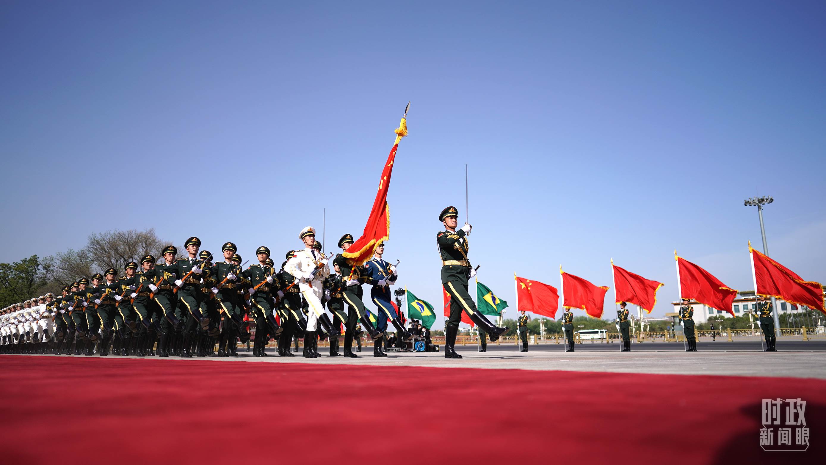當(dāng)天,習(xí)主席在人民大會(huì)堂東門外廣場(chǎng)為盧拉總統(tǒng)舉行了歡迎儀式。儀式上有兩個(gè)值得關(guān)注的細(xì)節(jié):一個(gè)是除了巴西國(guó)歌之外,軍樂(lè)團(tuán)特意演奏了一首叫作《新時(shí)代》的巴西特色音樂(lè),二是現(xiàn)場(chǎng)歡迎隊(duì)伍中再次出現(xiàn)了少年兒童的身影,這也是新冠疫情發(fā)生以來(lái),孩子們首次回歸室外歡迎儀式。