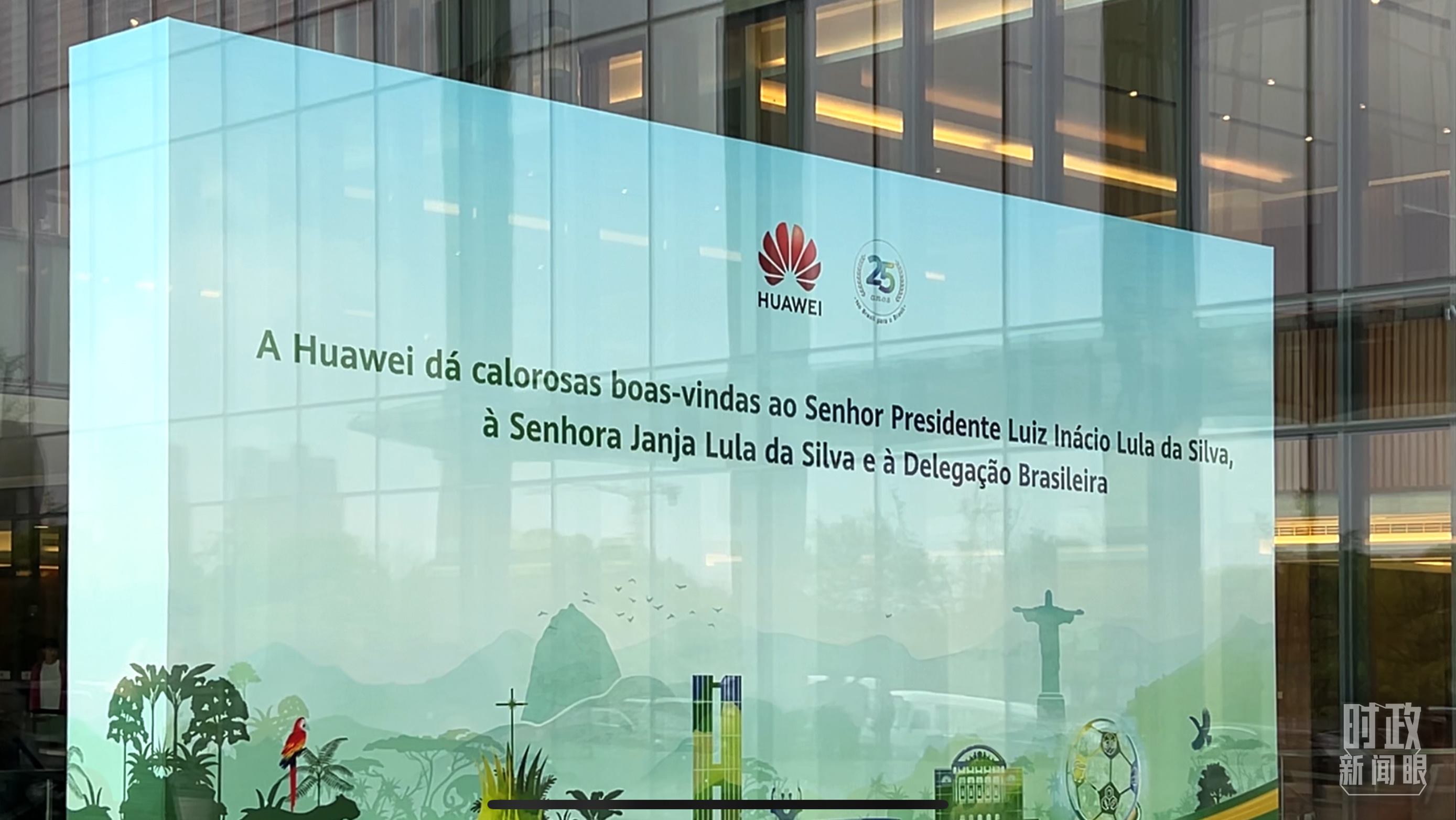 △華為上海研究所內(nèi)歡迎盧拉總統(tǒng)參觀訪問(wèn)的標(biāo)語(yǔ)。(總臺(tái)央視記者楊新禹拍攝)