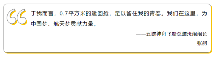 這是張舸在關(guān)艙門前送給航天員的祝福。飛船即將起飛,張舸從塔架撤離,回望一眼飛船,那一刻,責(zé)任感與使命感油然而生:“是所有航天人幾年的辛苦付出,我們才有機(jī)會(huì)在發(fā)射前同航天員道一句祝福?!?/p>