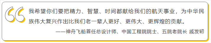 2013年5月4日,習(xí)近平總書記到航天科技集團(tuán)五院參加“實(shí)現(xiàn)中國夢、青春勇?lián)?dāng)”主題團(tuán)日活動(dòng)時(shí)指出:“我們同青年朋友們到航天城來,就是要實(shí)地感受載人航天精神,激勵(lì)包括廣大青年在內(nèi)的全國各族人民為實(shí)現(xiàn)中華民族偉大復(fù)興的中國夢而奮斗?!笔陙?,五院人始終堅(jiān)定沿著黨指引的方向前進(jìn),圓滿完成了以載人航天、探月探火、北斗導(dǎo)航等為代表的一系列航天重大工程任務(wù)。