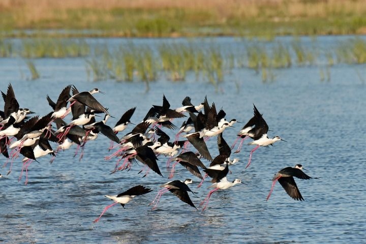 這是在雄安新區(qū)白洋淀拍攝的鳥群(2022年4月15日攝)。新華社發(fā)(周龍山 攝)