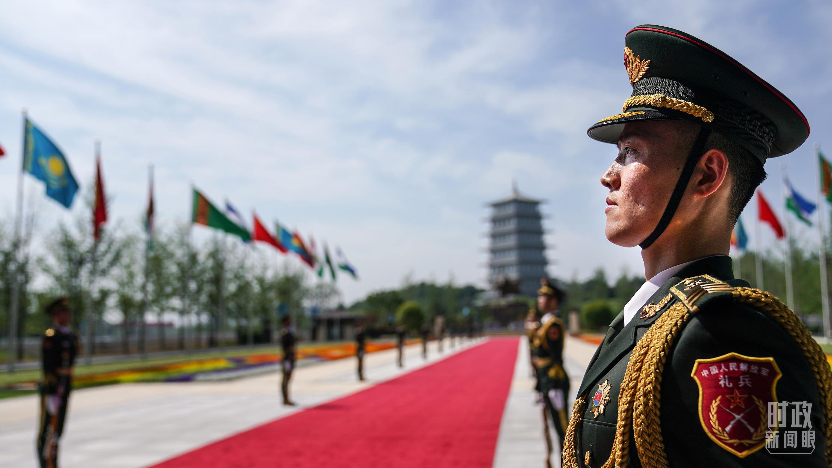△ 迎賓紅毯兩側,中國人民解放軍禮兵就位。(總臺國廣記者李晉拍攝)