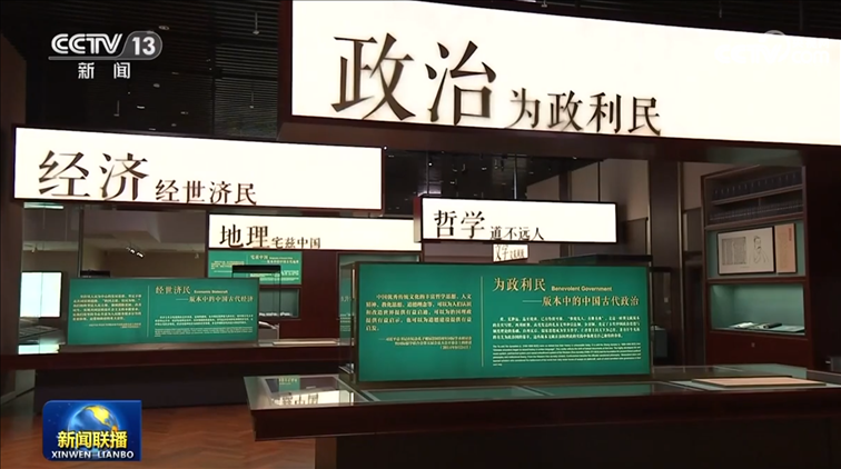 ▲圖為總書(shū)記參觀的“《四庫(kù)全書(shū)》合璧”庫(kù)展展品。