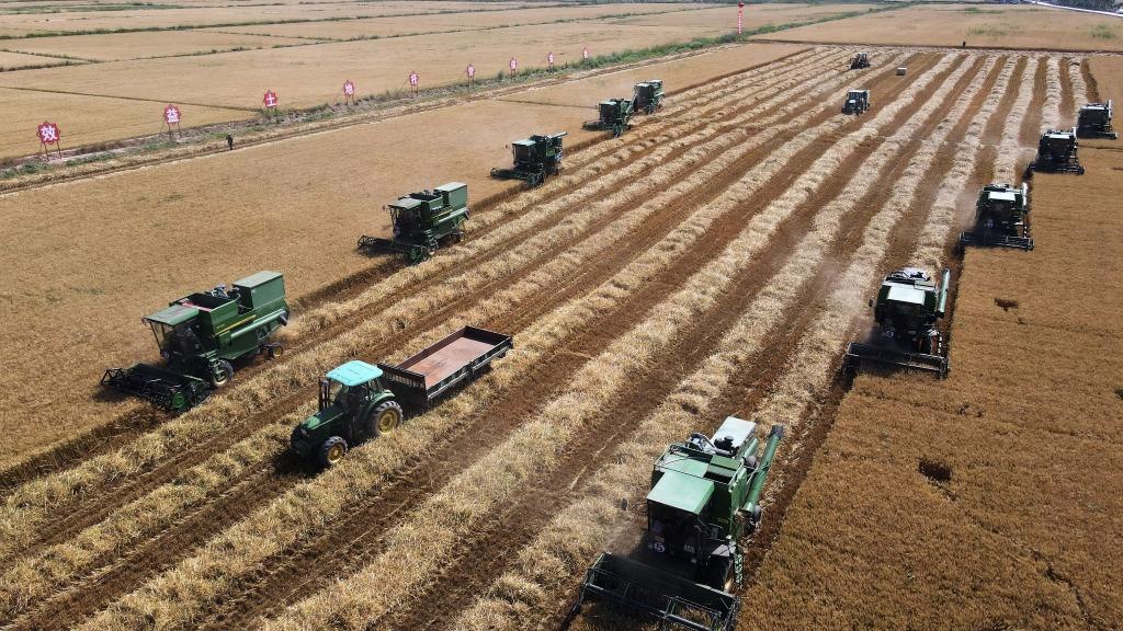 2022年7月20日,內(nèi)蒙古河套地區(qū)小麥迎豐收。新華社記者 李云平 攝