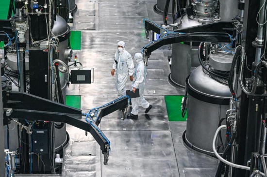 6月7日,工人在中環(huán)產(chǎn)業(yè)園中的單晶車(chē)間內(nèi)工作。新華社記者 彭源 攝