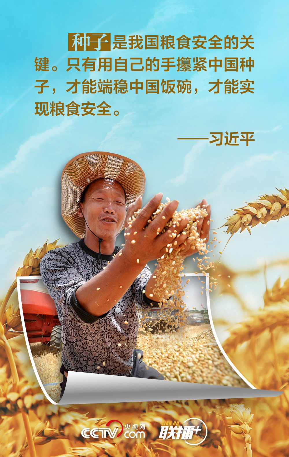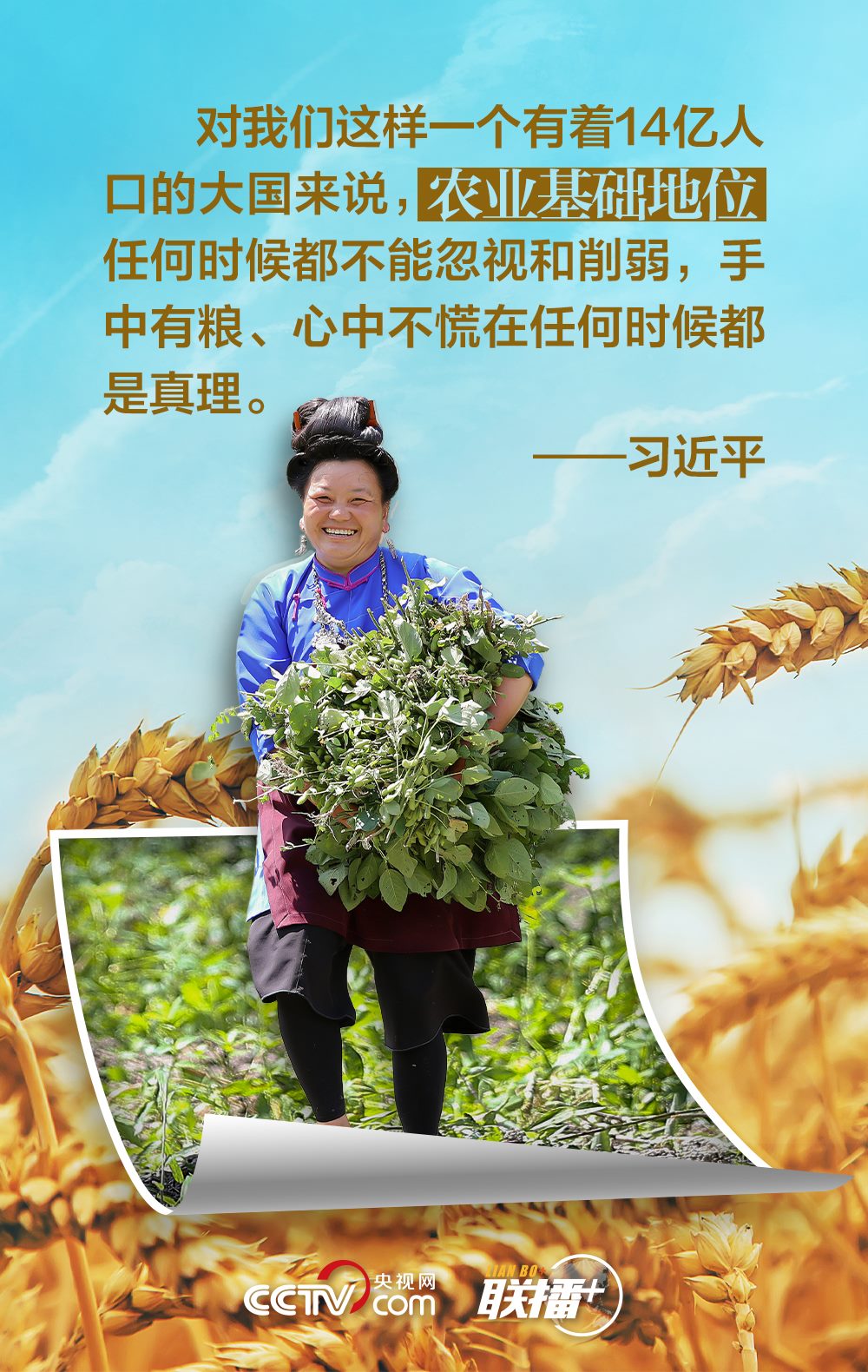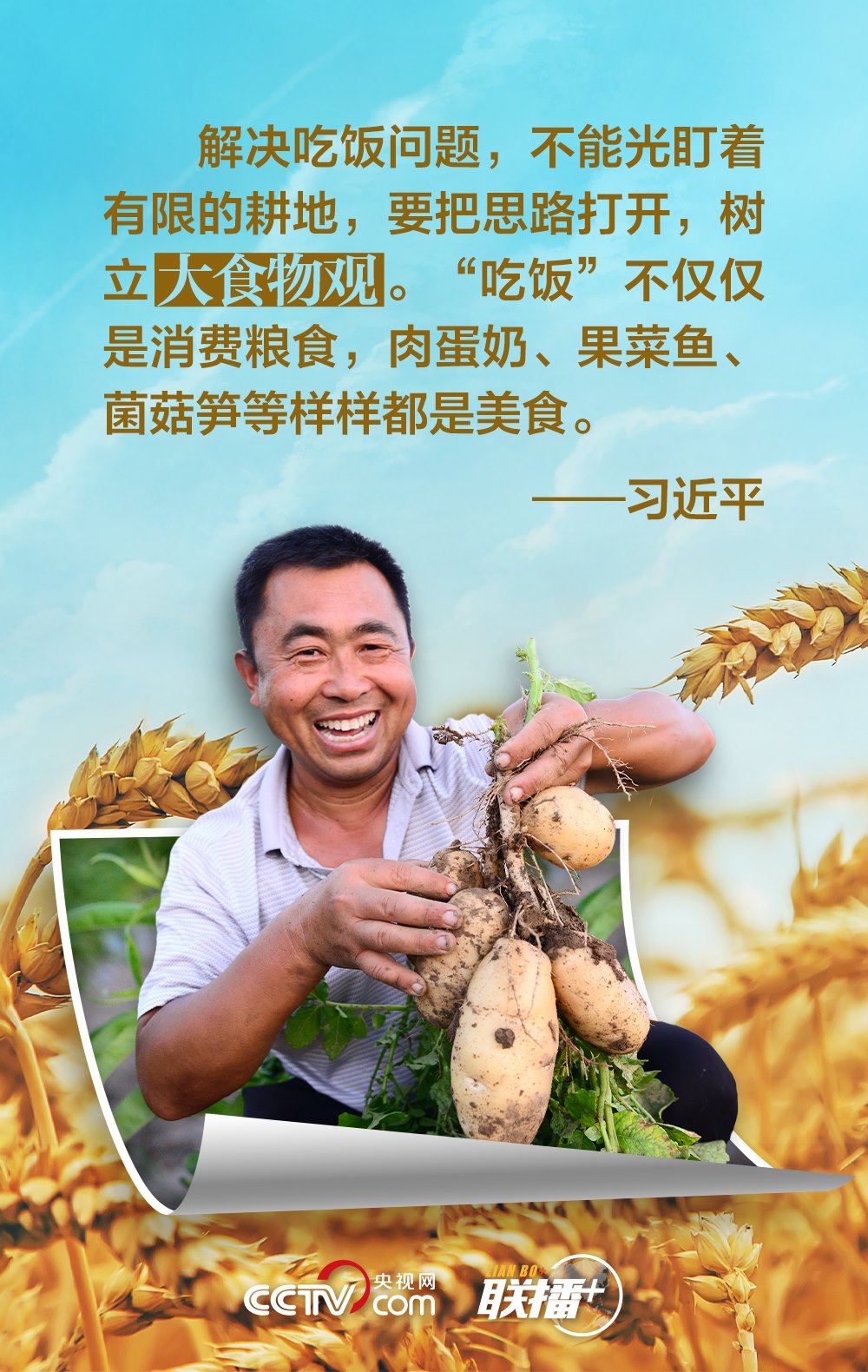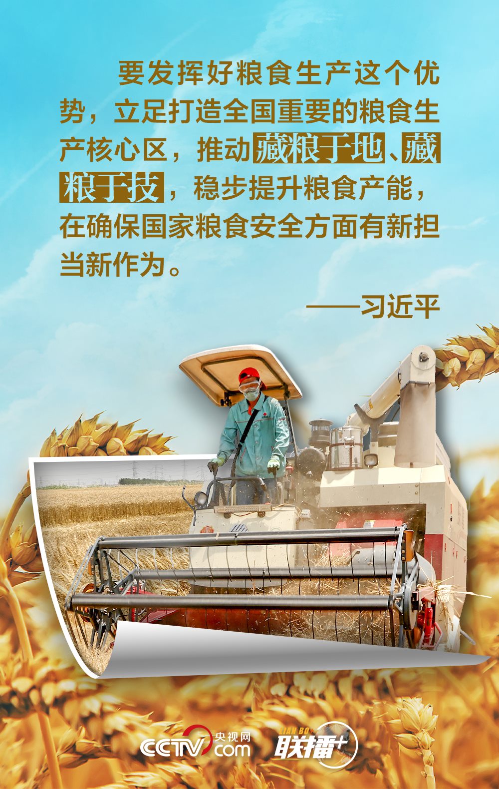 夏糧是全年糧食生產(chǎn)的第一季,約占我國全年糧食產(chǎn)量的五分之一,主要包括夏收的谷物、豆類和薯類等?!笆种杏屑Z,心中不慌?!绷?xí)近平總書記十分重視糧食安全,他強調(diào),中國人的飯碗任何時候都要牢牢端在自己手中,飯碗主要裝中國糧。值此夏收時節(jié),央視網(wǎng)《聯(lián)播+》與您一起學(xué)習(xí)領(lǐng)悟總書記的糧食觀。
